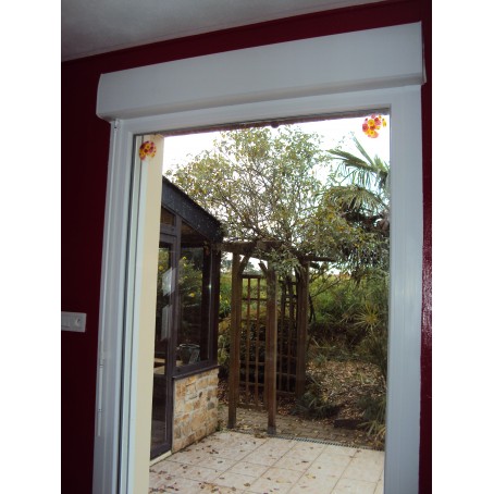Volet roulant manuel avec coffre intérieur et manoeuvre par tringle