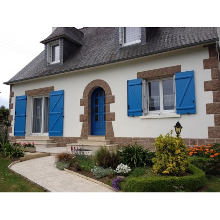 Ensemble de volets battants bleu à barres et écharpes 2 vantaux sur portes-fenetres