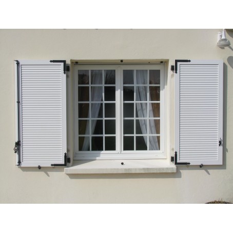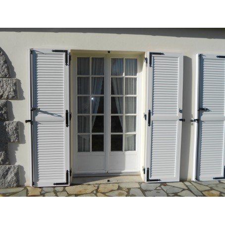 Volets battants lames persiennées 1 vantail porte-d’entrée et fenêtre fermeture par espagnolette