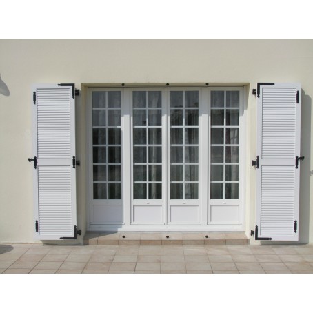 Volets battants lames à l’américaine 4 vantaux PVC blanc baie vitrée