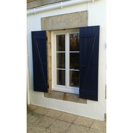 Ensemble de volets battants barres et écharpes z 2 vantaux sur fenêtre et portes-fenêtres bleu acier